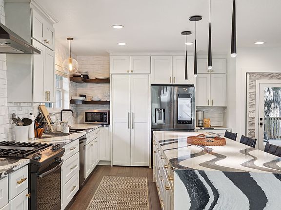 Discover elevated living in this high-end 4 bed, 4 bath luxury home featuring designer finishes throughout. The stunning kitchen is a chef's dream, complete with premium appliances and refined details, opening into a spacious living area with vaulted ceilings and a cozy fireplace. The expansive main bedroom offers a private retreat with a spa-like ensuite bathroom, including a soaking tub and walk-in shower. Enjoy ultimate convenience with upper-level laundry and a large basement perfect for entertaining, featuring a bar, second fireplace, and walkout patio. Multiple private decks, a large fenced yard, and breathtaking views of the Minneapolis skyline complete this exceptional home. A 2-car garage adds practicality to this truly luxurious offering.