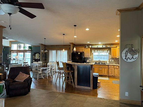Welcome home to your gorgeous 4 bedroom, 3 bath home located south of Newton on over 20 acres. Imagine if you will, having an all electric Skyline Double Wide (built 2015) 80' long mobile home on a permanent foundation and lots of acreage. With the East backyard and beautiful sunsets outside of your front door, you will want to take in the country views and as you walk inside, you will immediately fall in love with the open concept floor plan, vaulted ceilings along with a kitchen that features hickory cabinets, hidden pantry and black appliances. This home features a nice sized dining room just off the kitchen that leads to your screened-in back porch that is 16' x 20' and faces east so you can have your morning coffee while watching the sunrise. The hearth/family room has a wood burning fireplace and an eastern view out the back of the home and overlooks the patio and backyard. The master bedroom with its en-suite bathroom features a shower, a large jetted tub and a walk in closet. 3 additional bedrooms rount out the opposite side of the home along with a jack and jill bath, a nice sized laundry room with a wash sink and a 3rd bathroom that is perfect for guests. Don't miss this opportunity to own a gorgeous home that has lateral lines and a drinking well and over 20 beautiful acres of land. This home has paved frontage and a long winding drive just a short drive from Interstate 135 for quick access to Newton and Wichita for schools and shopping. 2 storage sheds (24' x 12' and 12' x 12') provide plenty of additional storage for outdoor items. Be sure to put this home on your favorite list and call your favorite REALTOR® to schedule your private showing today!