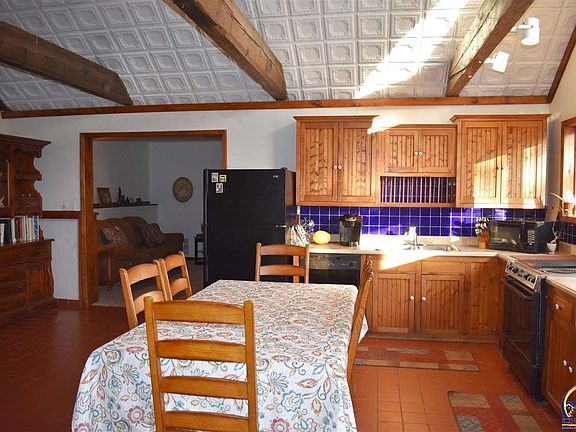 If the HUGE kitchen doesn't draw you in, the antique cabinetry and stove will. True southwest style. Unique spiral staircase to open loft. Large bedrooms. Large Master with open beams with skylights to star-gaze at night. Two lots makes for plenty of room to play.