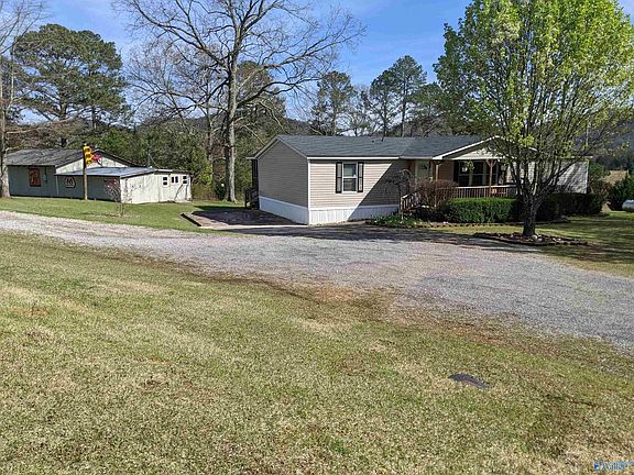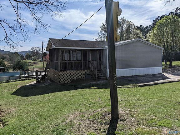 Well maintained 3 bedroom 2 bath manufactured home on 3 acres. There are beautiful views and amazing sunrises, sunsets and night sky! Roof, pool and living room/dining room carpet are aprx. 3 years old. HVAC system just serviced. Great Man cave attached to newer 2 car insulated garage. Nice big carport. Great front porch and nice screened in back porch that that leads down to the deck and pool. There is also a deep well on the property currently not in use. Perfect location! 10 minutes to Weiss Lake boat launch, 10 minutes to Little River Canyon and DeSoto Falls and 20 minutes to Ft Payne. All appliances to remain as will full propane tank. All waiting for you. Come, enjoy. Sit a spell.