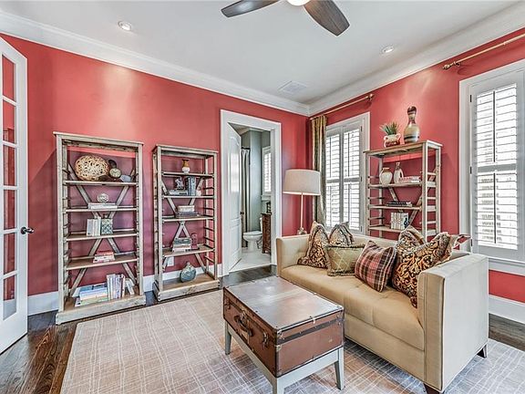 Gorgeous, brick home beautifully situated on corner lot in the coveted Vickery community, walking distance to the pool, park and shopping. This well-appointed, executive home is in pristine condition, has been updated throughout, and includes 5 bedrooms and 5 full bathrooms. The clean-lined exterior features a painted brick facade and beautiful cedar shake roof for a warm, yet refined appearance. A natural stone, wrap-around front porch provides charming curb appeal and is perfect for enjoying your favorite beverage on a warm southern night. The main floor features a fluid layout seamlessly transitioning from cozy family living to elegant entertaining. As you enter off the front porch, you will find a formal den/study on the right with a full ensuite bathroom. This room can also be used as a 6th bedroom. On your left is the oversized dining room perfect for large gatherings. The beautiful hardwood flooring throughout adds warmth and ties all the rooms together. Continue past the dining room to the gourmet kitchen outfitted with a six-burner Wolff range, Sub-Zero refrigerator, Bosch dishwasher, double ovens, and butler’s pantry. Centrally located by the main stairway, and open to the large breakfast room and fireside family room, it’s the perfect space for entertaining. The family room features a beautiful brick fireplace with built-in bookcases flanking each side. Dine al fresco in the light-filled breakfast room by opening the doors to the back patio with fenced yard. Off the breakfast room is a mudroom with additional storage, as well as the back staircase leading to the large in-law/au pair suite. Guests will enjoy their own private living room, kitchen, bedroom and full bath. Up the main stairs, you will find a spacious master retreat boasting a brick fireplace and room for a sitting area. Walk through the French doors into the spa-like master bath featuring custom made his and her vanities, a frameless glass shower and luxurious soaking tub. Off the master bath you will find the large master closet which connects to a full-sized laundry room for ultimate convenience. Two large secondary bedrooms, each with walk-in closets are also located on the second floor. Continuing upstairs to the third floor, a large loft-like landing leads to another generously sized guest room with full ensuite bath. Quietly tucked away from the main living areas, this versatile room could make the perfect media room or man cave, Tons of additional storage spanning the full length of the home can be found on each side of the third floor landing. Vickery is a vibrant community featuring breath-taking architecture and over 75 acres of parks and beautifully landscaped green spaces. Located in Forsyth County, just minutes from of Alpharetta and Johns Creek (think lower taxes) and convenient to GA400. Vickery Village, located at the front of the neighborhood, serves as the community hub offering locally owned restaurants, shops and businesses to explore. Walking distance to outstanding elementary and middle schools! Also close to Avalon, Mall of Georgia, Lake Lanier and the Winward business district. Take full advantage of all that Vickery has to offer!