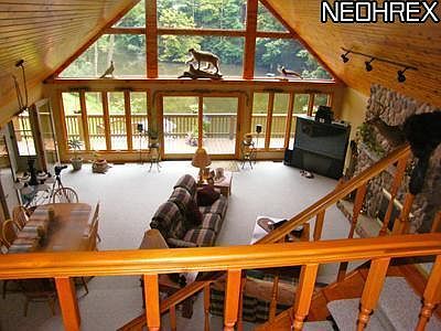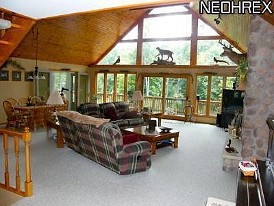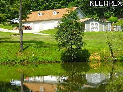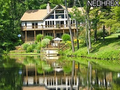 One of a kind property 32.9 wooded acres of seclusion! 2 stocked ponds for fishing, shooting range for target practice. The house has 3600 sq ft of living space overlooking the pond from every floor. Three decks all winding down to the water. Beautifully landscaped with 4 wheel or hiking trails throughout the property. In addition to the attached garage there is a 4 car garage with one stall paint booth, also has an apartment above. All buildings are heated with free gas from well on property, small yearly royalty. Priced to sell!
