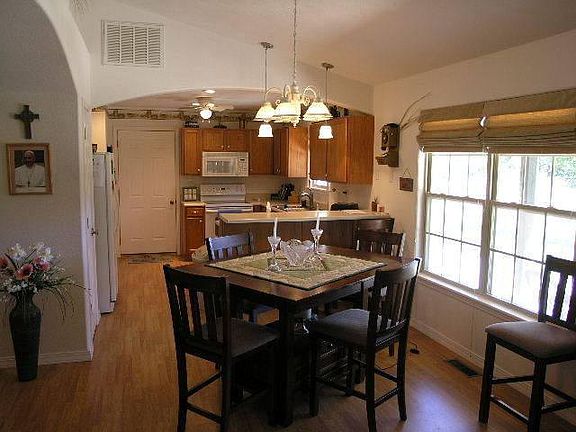 This 4.1 acres has a 3 bedroom, 2 bath home with 2 car attached garage and has 1502 Sq. Ft. of living space. The kitchen has oak cabinets and laminate flooring and includes an electric oven/range and refrigerator. The architecture inside this home has lots of display area and arched entry ways into most rooms. The living room has a propane log fireplace. The master bath has his and her closets.