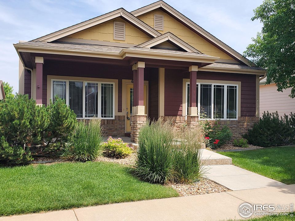 Cutom built ranch bungalow in highly desired tree, lined neighborhood Westridge Village. Everything needed on main level - large laundry off of oversized 2 car garage (24x24), tucked away office w natural light - Large inviting kitchen w granite island abundant cabinetry and spacious pantry. Covered front porch invites you inside to where hardwood floors have just been refinished to perfection. Large primary bedroom w 5-piece master bath and make up bar. Finished lower level with wet bar and 2 oversized bedrooms, both with large closets. Home faces South and is considered a patio home as the landscaping, yard care, snow removal, trash, and exterior water are professionally managed by the HOA. Owner is responsible for their own structure maintenance. Located within 1 mile of major retail, Greeley Family Fun Plex, ball fields, city pedestrian trail w connection to the master Poudre trail system and well locally renown charter schools.