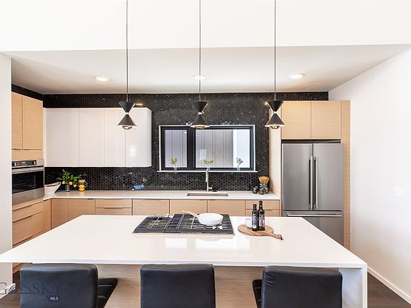 Unobstructed views of the Spanish Peaks and Gallatin Range make this fine home a true Montana dream. Upgrades start from the walls out with upgraded insulation and windows to high quality custom finishes and craftsmanship throughout. This 3 bedroom home features single level living at its finest when you enter the stunning living room with 15 foot ceilings and floor to ceiling a herringbone wood accent wall, abundant windows with great natural light, and incredible views! The strikingly beautiful kitchen is sure to impress with the full wall backsplash, upgraded appliance package, downdraft cooktop, wall oven, fun lighting and Merit cabinetry. The impressive master suite features a large walk-in shower, designer fixtures, and beautiful tile craftsmanship. Exciting things are happening in Southwest Bozeman!