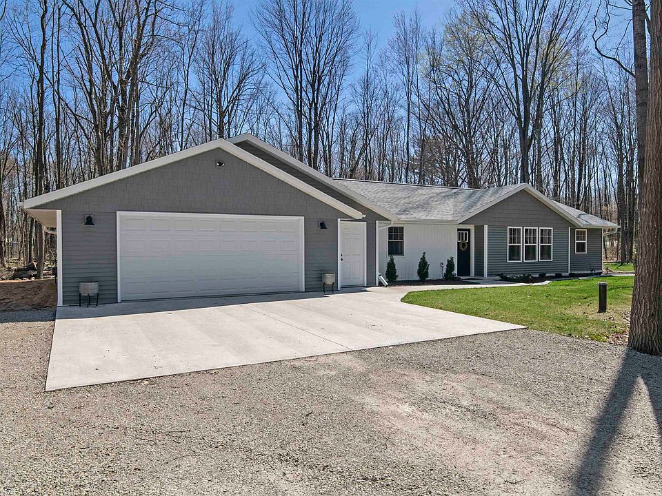 Nestled on a picturesque 2.81-acre wooded lot in Abrams, this charming 3-bedroom, 2-bathroom zero entry ranch home built in 2022 offers the perfect blend of modern luxury and natural beauty. With in-floor heating, a spacious bonus room could be used as a workout room/office or a large playroom, the possibilities are endless! Outside you will find large a 30x40 detached pole building with a 10ft apron at the rear and a 20ft apron in front with a 12ft overhead door! Relax in the hot tub as you in enjoy the private backyard. It truly is an inviting retreat for relaxation and recreation. Conveniently located near Patriot Golf Course. Schedule a private showing today!