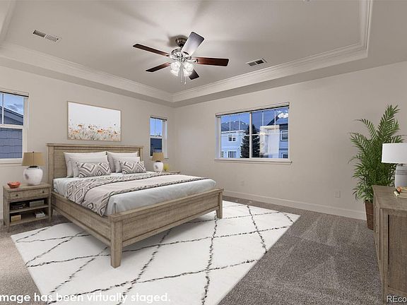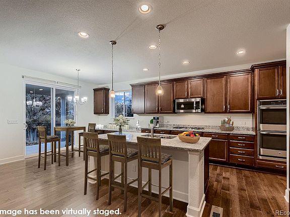 Welcome to this beautiful Wheatlands 2 Story! The Dillon, one of Richmonds most popular models, is thoughtfully laid out with 5 BEDROOMS, 5 BATHROOMS, a full FINISHED BASEMENT and a massive LOFT just to name a few of it’s features. The spacious gourmet kitchen is a chef's delight, featuring top-of-the-line stainless steel appliances, granite countertops, a center island and breakfast nook for casual dining. You'll find rich wide plank wood floors throughout the main floor and NEW CARPET in the den and upstairs bedrooms. All of the bedrooms upstairs are situated so none of them share any walls with another. The massive loft offers endless possibilities, a play area, a sitting room, office space, yoga studio, whatever you might need! The finished basement includes a huge family room, media room, a spacious bedroom and a full bath as well as TWO nicely sized STORAGE rooms. Other notable features of this home include the OWNED SOLAR PANEL system, which drastically reduces your monthly electric bill, very popular JELLYFISH lighting that adds extra pizzazz for your holiday decorating or simply additional lighting for security, a covered back porch, epoxy coated garage floors, a butlers pantry and a cozy fireplace in the family room. The Wheatlands subdivision is bursting with amenities including a new YMCA Center located mere blocks away where your MEMBERSHIP is INCLUDED in your HOA dues! Residents also have access to the beautifully renovated clubhouse, pool, parks and trails. Zoned for the highly sought-after CHERRY CREEK SCHOOL DISTRICT this home is even walkable to the neighborhood elementary school. Located right off E-470, downtown Denver, DTC and DIA are all very accessible. Ample dining options and shopping are also just a stones throw away. Outdoor adventuring can be found nearby or via bike path at the Aurora Reservoir. Choosing this home gives you more than just a house, it offers a fabulous community and lifestyle for an excellent price.