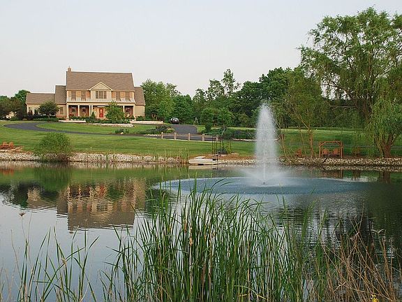A stunning country estate located on 3.5 plus acres. Breathtaking views of the 2 acre pond & fountain in addition to natural surroundings. Large country kitchen, accented by great room, sunroom & office. Spacious first floor master suite, in addition to three upstairs bedrooms and loft. 31/2 baths complete this spectacular home.Enjoy the outside on the attached stone patio, while overlooking the koi ponds and waterfalls. A three car heated attached garage compliments the home in addition to a single car detached garage which would be ideal for a workshop, artist studio, etc.