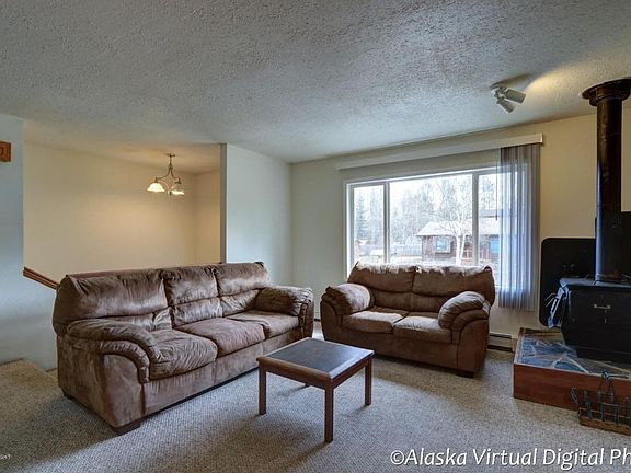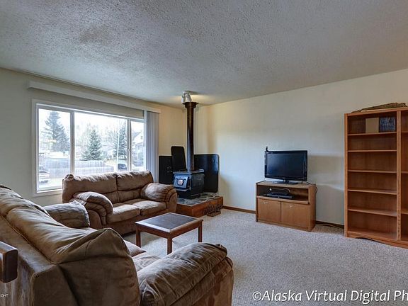 Located on a quiet, cul-de-sac circle, four- bedroom south anchorage home backs to a greenbelt w/ backyard access. Large family room down & a huge deck off the kitchen, this home is perfect for entertaining. The yard is large w/ a shed & is bordered by RV parking & a huge parking pad. With a newer water heater and boiler and new windows on the top level, this home is ready for your touches