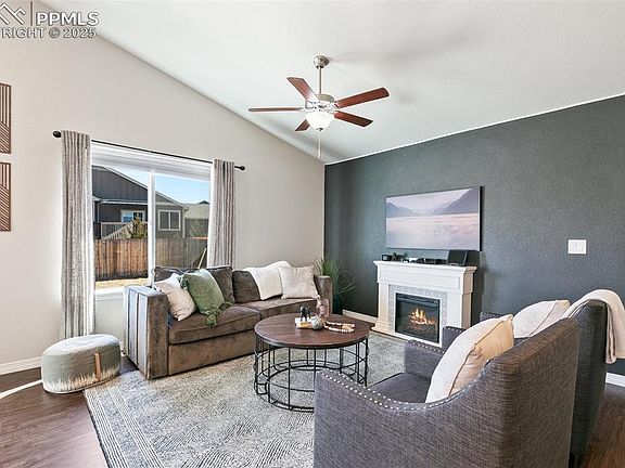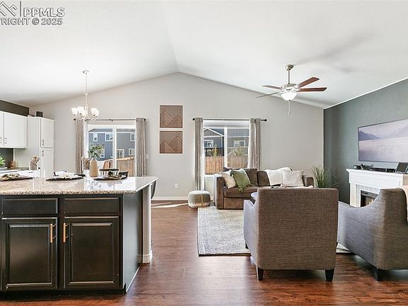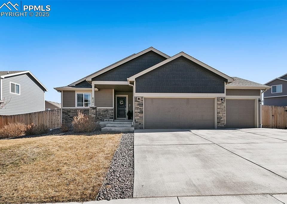Welcome to this beautifully maintained 4-bedroom, 3-bathroom home with a 3-car garage, situated on an oversized lot in the desirable Lorson Ranch community. Conveniently located just 15 minutes from Fort Carson, Peterson Space Force Base, and Schriever Space Force Base, this home offers both comfort and accessibility. Upon entry, you'll be greeted by an open floor plan filled with natural light and soaring vaulted ceilings. The main level features luxury vinyl plank flooring throughout the living room, kitchen, and dining area. The kitchen is a chef’s dream, boasting stainless steel appliances, 42” cabinetry, granite countertops, a spacious island with additional storage, and a newly installed wine fridge and coffee bar with extra cabinetry. The primary suite offers a private retreat with an attached 5-piece bathroom and a walk-in closet. A second bedroom, a full bathroom, and a conveniently located laundry area complete the main level. The lower level features 9’ ceilings, an expansive recreation area perfect for entertaining, two additional large bedrooms, and another full bathroom. Outside, enjoy breathtaking views of Pikes Peak from the covered front porch, as well as a spacious backyard with plenty of room for outdoor activities. A side door provides additional access to the third garage bay. Also, there is a radon mitigation system and a NEW ROOF! (2025) Unable to view the home in person? Check out the 360 degree virtual tour and floor plan linked herein!