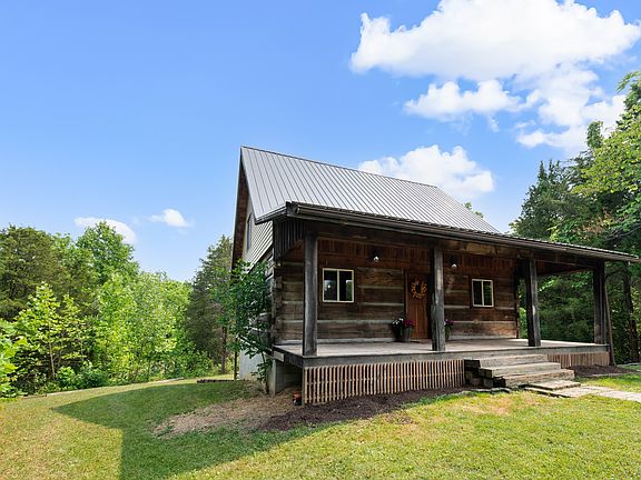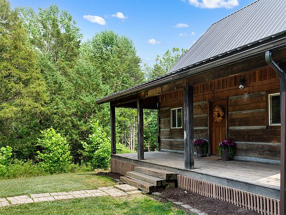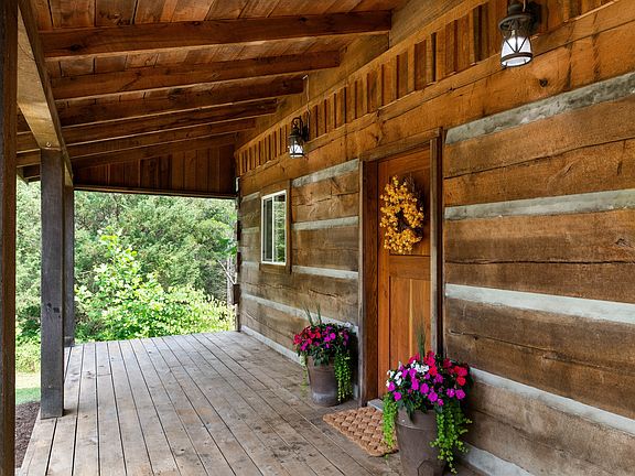 Authentic Beautiful Log Cabin Secluded On Private 2 Wooded Rolling Acres. This Charming home features Metal Roof, Open Floor Plan Large Covered Front Porch & Covered Deck overlooking a peaceful setting. Oak Hardwood Floors were milled from property. Winding drive leads to the tranquility you have been searching for! 2 large bedrooms & full bath & loft/small playroom on upper level. Kitchen , Dining, Family/Great Room, Entry & bonus area on Main Floor, and Finished Walkout Lower Level features Primary Bedroom, Large Laundry & Storage area. All windows have gorgeous views! All Appliances included. Foundation for Fireplace & Can be added, Blackberry Plants, Chicken Coop, Hard to find this, Schedule a Tour today!