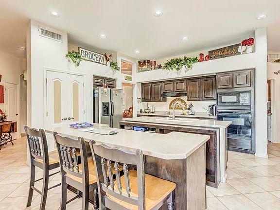 NEW PRICE REDUCTION!!!Arrowhead ''Top of the Ranch'' 4 bed, 3 bath now available! One of most popular Centex Homes single level floor plans with beautiful designer finishes that home buyers desire! The amazing kitchen has been updated with refinished cabinets and has double islands for any cooking or entertaining needs. When you think it can't get better, step outside and you have an outdoor living area with pool and putting green that is awesome! PLUS all of this within minutes of shopping, dining, entertainment and freeway access!!