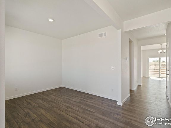 Contemporary, well designed new home with a study/flex space on the main level and an upstairs loft! On a big corner lot too! This home is totally equipped with elegant white cabinetry throughout, granite kitchen countertops, plank flooring throughout the main living areas, 9' ceilings, the front and backyard landscaping, and all the appliances including the washer/dryer! This quaint neighborhood is just steps from Centennial park, Thunder Valley elementary school and a mile from historic downtown Frederick! Great access to I 25 and the future King Soopers shopping area! Home warranty included. ***Estimated Delivery Date: March. Photos are representative and not of actual property***