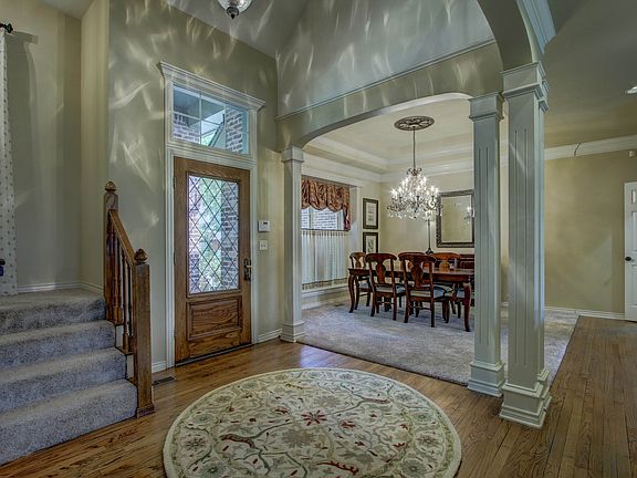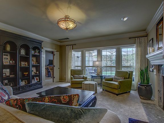 Transitional style with a classic elegance in this fully updated Cozort built 4 bedroom 3.5 bath home on impressive treed lot in South Tulsa. Open & flexible plan has dual living-both with fireplaces & dual dining. An updated kitchen with center isle flows to a dramatic vaulted & beamed family room that accesses a renovated outdoor living area with gas fire pit. Oversized main BR has a beautifully renovated bath. 3 BR's, 2 updated baths & exercise area up. Replaced windows, HVAC, paint, carpet, lighting