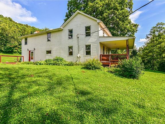 A little slice of Heaven in this 19 plus acre Farmhouse! This 5 bedroom 1 1/2 bathroom Farmhouse is literally breathtaking. The views are mesmerizing as if you are in your own paradise. When you walk into this Farmhouse you enter in the Family Room which is perfect for entertaining or lounging around the beautiful fireplace that was made from stones that were found right on the property. The kitchen is spacious with a lot of room and solid wood cabinets. There is a lovely half bathroom located off of the kitchen. As a bonus there is a Family Room for added space, perfect for an extra TV room, man cave, library or more, the possibilities are endless. There is bedroom on the main level, and additional 3 large bedrooms on the second floor with a full bathroom. The Master bedroom has an additional room for a nursery and a large walk-in closet. The home was updated and remodeled in 1988, with vinyl replacement windows throughout, and the basement was added on too and now gives even more space which includes a laundry room, fruit cellar, and an entrance to the outside. There is a garage that holds 3 cars, has a bank entrance, concrete floors, hanging gas furnace, and is insulated. There is also an open full attic and a staircase to the lower level. Don't miss out on looking at the huge covered tree stand which is perfect for any Hunter, gazing at the stars, or just viewing the scenery. What are you waiting for? Make an appointment to come see YOUR new Farmhouse Paradise today!