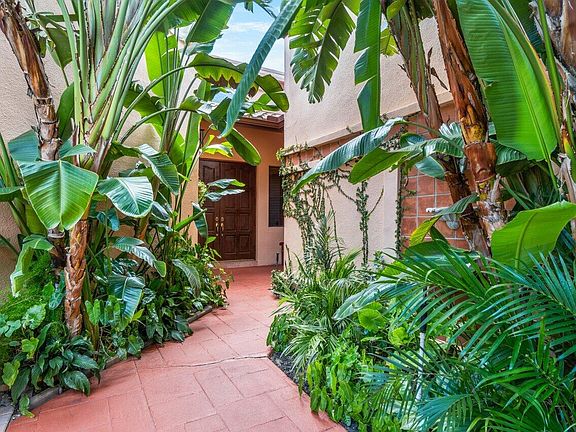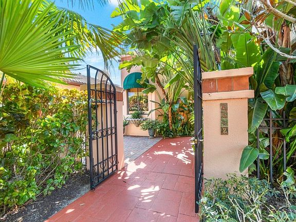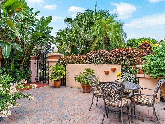 Step into this Mediterranean courtyard paradise, where tropical gardens embrace every corner of this enchanting home. Approach through a set of iron gates & you're already transformed. Inside, you'll discover a warm & inviting ambiance w/ 12-14 ft ceilings, walls of sliders & high windows, filling the space w/ natural light. The backyard sanctuary is as inviting as the interior, w/ a cascading waterfall at its heart. Features include a grand double-door entry, raised doorways; adding a touch of elegance, LED recessed lighting, crown molding, custom sound system, custom pantry closet in the kitchen, 2022 A/C & 2020 ROOF. Freshly painted. This beautifully maintained home, with its Mediterranean charm & easy indoor/outdoor living, is undeniably a timeless forever home. To note, the tropical gardens are filled with Silver Bismarck, Traveler Palms, Australian Tree Ferns, and Japanese Fern trees, to name a few. The property is located in the man-gated subdivision of Villa Flora, at Boca Pointe Country Club; a NON-MANDATORY membership club that offers golf, tennis, a sports center, dining, and a clubhouse filled with social events and activities. An abundance of restaurants, shops, gyms, and other conveniences are located nearby. And then there's the beach! Don't miss the opportunity to make this property your own private paradise. Welcome home!