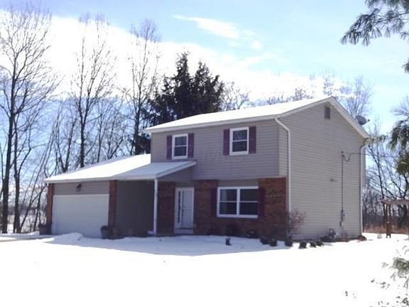 Great two story home setting on 1.95 acres with gorgeous rolling land and view of the stream. This home has numerous updates, such as kitchen with oak cabinets, corian counter tops and tile backsplash. New flooring in kitchen, entry way, bathrooms, and family room. New fuse box & transfer switch, new front door, new interiors doors and baseboards. New turnaround in driveway & underground drainage tiles/downspout and gutter guards. This home has a spacious master suite with his and her closets. Enjoy the large tiled Florida room with ceiling fan or play a game of basketball on the half court with cement pad. Has a 8 x 16 storage unit for additional space.