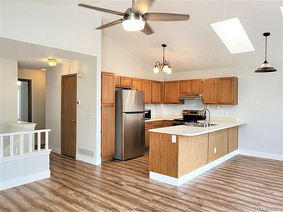 Welcome to this beautiful 3 beds, 2 baths home, backs to Park, located in the desirable community of Highlands Ranch! Bright and open floor plan, Vaulted entry way, Beautiful newer flooring throughout the house, New window blinds, Kitchen with lots of cabinet space, dining area with vaulted ceiling and skylights, living room with fireplace, Spacious primary bedroom, family room with fireplace, Lots of storage spaces, Perfect location, Short distance to Fox Elementary, Cresthill Middle and Highlands Ranch High schools, Easy access to the Links Golf Course as well as extensive trails, Close to dining, shopping, entertainment, parks and dog parks, Highlands Ranch HOA-access to all recreation centers, a summer concert series and 4th of July fireworks, Also, close to I-25 and E-470 for easy access to DTC, Downtown and DIA.