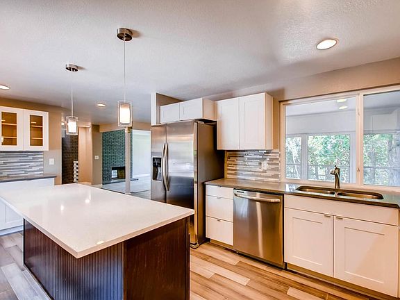 Don't miss out on this amazing home has been fully remodeled. Charming 4 bedroom and 3 bath home in Heritage Place. This home features a gourmet kitchen with quartz counters, decorative tile backsplash, large kitchen island, convection oven with hood, stainless steel appliances, new two toned cabinets. Gorgeous new hardwood floors, lighting, interior paint, doors and hardware throughout home. Living room features picture windows, vaulted ceilings and double sided fireplace to family room. Large master bedroom has his and her's closets, ensuite bathroom with double sinks. Home has new windows, and newer roof with transferable warranties. All bathrooms are updated with quartz counters, new vanities, vessel sinks, tile tub/showers with decorative inlays, and tile floors. Unfinished basement for extra storage or for new owner to make theirs. Home is backed to a greenbelt and is within 1.5 miles of lightrail and close to DTC.