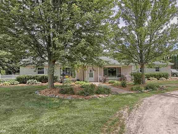 Quaint, all-brick ranch in the country setting you've been looking for! Sitting on just under 3 acres, the greatroom has a large bay window allowing tons of natural light in, and a beautiful stone fireplace. The large, arched doorways give an open feeling between greatroom, dining room, and kithcen. The Completely customized, the kitchen has stainless steel appliances and a breakfast bar. Three bedrooms, and the master bedroom has full mirror sliding closet doors. Brick patio in the backyard. On the property there's a fenced in garden area and chicken coop, beautiful fruit trees, and a deer blind in the trees.