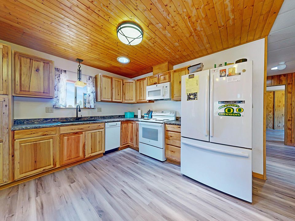 Rare opportunity to own Tumalo acreage under $400,000! Conveniently located between Bend and Redmond with easy access to Hwy 97. The updated home features a spacious open floor plan with charming wood accents and exposed beams. Open kitchen and plenty of natural wood cabinetry, offering both function and style. Recent updates include flooring, cabinetry, appliances, bathroom vanity, fixtures, and Trex decking on all porches. Situated on nearly 4 acres, this property is ready for your personal touch! So much can be done! Conveniently close to Bend and Redmond, you get the best of both worlds: serene country living with city amenities nearby. Come and see the potential this property has to offer!