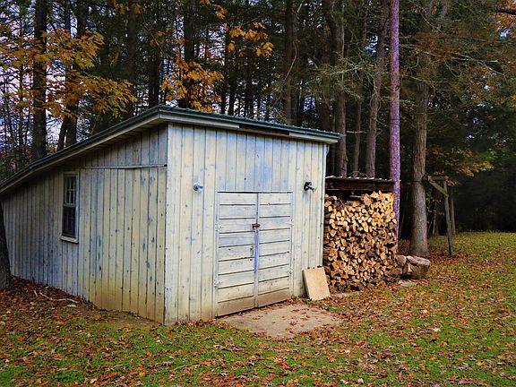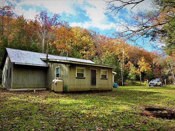Looking for that cabin or residence in the country? This property sits on on the mountain side above Rathbone and the Canisteo river tucked away in a private lot with a 46 acres parcel that comes with it for hunting, hiking or enjoying nature on the trail network established through out the property. Currently the property is used seasonally for deer hunting and the owners have enjoyed successful deer hunts and bear hunts consistently through bow and guns seasons over the years. The home is an open concept with an Englander brand wood stove centrally located in the largest room of the common kitchen and dining room, which leads to two bedrooms and a bathroom. A great room with a vaulted ceiling is a large retreat for after the days hunt or a place to enjoy your family. An enclosed porch/entrance greets you as you enter the home, and served well for use as a mudroom, a storage room or a place to keep some firewood convenient to the living space. This listing comes fully furnished, and includes the kitchen appliances, and firewood prepared for winter next to the shed outside. Enjoy a warm camp fire gathered around the fire ring in the back yard through out the year. Trail camera pictures reveal the 46 acre parcel is home to an abundance of deer, bear, turkey, bobcats and fishers among other forest dwellers. The acreage is mostly hardwoods on the north end and higher portions of the property, while deep hemlock bottoms make up the rest of the overstory of the property in the lower levels of the trails. No doubt where deer and other game seek for shade and security. Priced well to sell, check this one out for a cabin, a home or a retreat in the mountains. - Well - Septic - - Electric - Propane - Wood stove - Deer hunting - Bear Hunting - Kitchen/Dining 22' x 27' - Living room 15' x 19' - Bathroom 15'9" x 5' 10" - Bedroom one 15'6" x 8' - Bedroom two 15'6" x 7'10" - Entrance 22' x 8'3" - 1.17 miles south of Tracey Creek State Forest - Close to Addison - Close to PA - Close to Corning - Addison Schools - 1,488 ft Road frontage - Taxes $2,882 (2020) - Sold As Is.