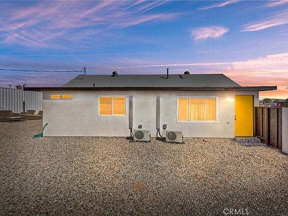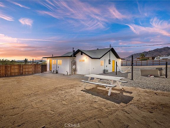 **Turnkey Mid Century**Beautiful Desert Views**16,234 sqft. Lot**RV/Access**Bring the Toys**Zoned RM SP-4**Must see this fully remodeled yet affordable 2 bedroom, 2 bathroom desert oasis. This home features a newer roof, LED recessed lighting, light fixtures, electrical outlets, and switches. It also features an open design concept from entry through the living room, and dining area, a newly upgraded kitchen with white cabinetry, black handles, elegant quartz countertops w/full pattern tile backsplash, a center island w/breakfast bar, white stove/oven, a built-in microwave, all new Low-E dual pane windows, doors, baseboards, casings, waterproof vinyl wood plank flooring, 4 separate mini-split heating & cooling system units, new stucco, and fresh interior & exterior paint. The two fully remodeled bathrooms are tastefully tiled and have black fixtures, new white cabinetry in one, a fully custom-built sink in the other, and both have quartz countertops. This home is conveniently located near Starbucks, Campbell Hill Bakery, Farmers Market on Saturday, and other eateries including restaurants & fast food. Banks, the post office, and public transportation are all very close. Within walking distance or a short drive is the Cultural center of 29 Palms, Joshua Tree Visitors Center, the North entrance to Joshua Tree National Park, and Tortoise Rock Casino. Coming Soon is Project Phoenix that's currently under construction. It will feature an approximately 11,000-square-foot Community Center with a gymnasium/multipurpose room, and a new 4,100-square-foot Joshua Tree National Park Cultural and Visitor Center. The site will also contain a 10,000-square-foot entry plaza and a three-block-long Paseo serving the businesses along Rt. 62. Yucca Avenue will be redesigned as an event space that can be closed for special events such as festivals, farmers markets, art shows, car shows, and musical events. A large stage will grace the event space at the corner of Yucca Avenue and the Paseo parking lot between the Community Center and the Visitor Center. Over 200 new public parking spaces will be provided in desert landscaped parking lots in addition to 150 new on-street parking spaces. Parking will also be available for tour buses and RVs. Desert landscaping, ornamental streetlights, benches, and public art will enhance the streetscapes and plaza. Don't miss out on this excellent opportunity to purchase this affordable home in the heart of the fast-growing 29 Palms Community.