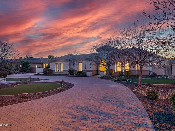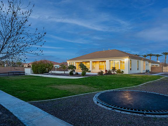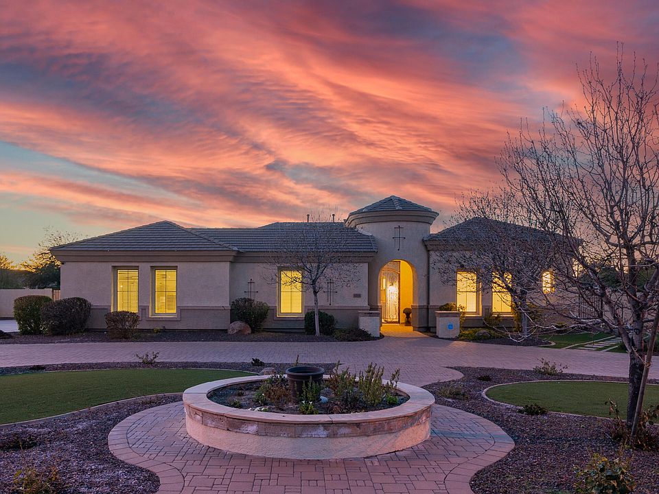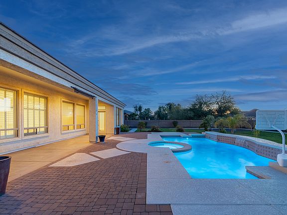 Just beyond the gates of the luxurious Estados at Seville Golf and Country Club, you'll find this incredible semi-custom home waiting for you! Sprawling 4,150 SqFt single level estate offers 4 spacious bedrooms, a den, large bonus room, 3.5 bathrooms, and a 4 car garage that sits on over a 3/4 acre lot. A pavered circular driveway and gated courtyard entry welcome you. From the moment you step inside, you'll fall in love with the tall ceilings and light and bright floorplan. The spacious greatroom features an abundance of windows, stacked stone fireplace, and built-in cabinets that open to the huge chef's kitchen complete with granite countertops, tile backsplash, gas cooktop, double wall ovens, built-in refrigerator, inviting breakfast bar, and white cabinets that extend all the way to the ceiling. Just down the hall is a spacious owner's retreat offering a separate exit onto the patio, ensuite bathroom with jetted tub, separate shower with two shower heads, split vanities, and large walk-in closet that opens to the remodeled laundry room, complete with an abundance of cabinets and built-ins, laundry sink, and room for another refrigerator or freezer. Step outside onto the large covered patio that overlooks the pebble finish pool, built-in spa, and tranquil water feature. With a built-in trampoline and huge grassy area, you'll have plenty of room for the kids to play or to create the outdoor space of your dreams. This home is full of high end custom home finishings, including solid wood doors, natural stone flooring, wide baseboards, and a combination of shutters and 2 inch blinds throughout. Additional improvements include a freshly painted interior and brand new pool/spa heater. Plus, with a 4-car garage and enough room for 6 cars in the driveway, you'll have plenty of room for all of your toys! Seville Golf and Country Club features Gilbert's only private golf course. Residents can take advantage of amenities such as 2 pools, a waterpark with 2 slides, volleyball, tennis, basketball, fitness center, and onsite restaurant (membership required). This amazing home has so much to offer, and is a true must-see!