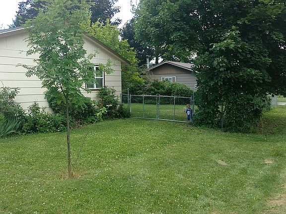 3 bedroom 1 bath home located in a quiet neighborhood on a corner lot. Large living room with newer laminate flooring. Dining room with sliding glass doors leading out to covered concrete back porch and large fenced backyard. Kitchen features a built-in oven as well as a built in counter cook top. Lots of kitchen cupboards for storage. 2 storage sheds on the property as well as a mature apple tree, thorn less raspberries and garden area which has June bearing strawberries. New composite roof in 2015! Fenced in yard bring your pets.