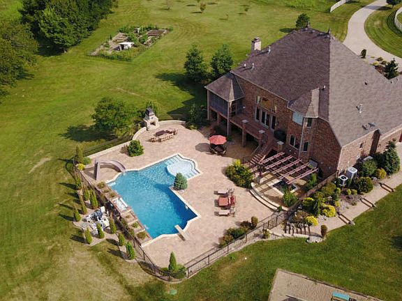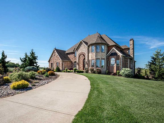 Welcome to this luxurious brick & stone Tuscan style home on 25 spectacular acres featuring 5 beds, 4.5 baths, 3 car garage, and a majestic outdoor living space with in-ground pool! An additional 15 acres available. Other highlights include the gourmet kitchen, tranquil master suite, gorgeous details from Brazilian cherry hardwoods to architectural ceilings and beyond, multiple fireplaces, immense walkout basement, rec room, storm shelter, barn & multiple outbuildings, plus so much more! Upon driving through the front gate onto the scenic property, you're greeted by gorgeous curb appeal of mature landscaping and immaculate exterior details. The curb appeal of the back is just as breathtaking as the front. See More...