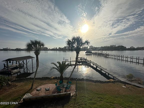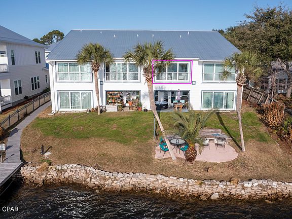 MOTIVATED SELLER! BRING ALL OFFERS! Gorgeous panoramic lagoon WATERFRONT views! This property is located on the lagoon which leads to the Bay and Gulf. INVESTORS, this would make a wonderful CORPORATE RENTAL. A community boat dock with slip use is available for owners on a first come, first serve basis- a rarity in this area. This 2/1 has a new exterior, roof, windows and doors. The sliding glass doors off of the main living room and kitchen area allow for an abundance of natural light. New LVP flooring throughout gives a clean, coastal feel. The second bedroom, unlike many other units in this complex, has a closet to make it a true 2nd bedroom. Located on PCB's east end, this property is conveniently located near some of the best restaurants and beaches the area has to offer. Additional parking for boats is available on site, as well. No short term rentals allowed. Buyer to verify all measurements and information, if important. Note- The fan in the living room DOES NOT convey?