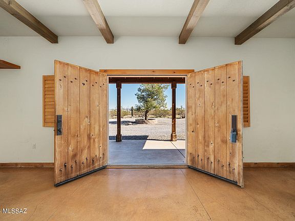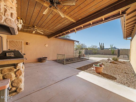 Unique ranch style home nestled on 3.31 acres of horse property. Two En-suites w/walk-in showers ,private baths & patios leading to rear yard. A perfect blend of modern lifestyles, privacy & convenience. Accented w/ knotty alder wood 8' alder doors & cabinets, stained concrete floors & custom wood shutters throughout. Split plan w/a rock fireplace in the heart of the home. Spacious kitchen w/multiple work areas, ample counter space, storage, separate pantry & eating area. Enjoy the best of AZ outdoor living in the rear yard featuring a rock BBQ entertainment area & tranquil pool overlooking the Tucson mountains . The perfect setting for gazing at colorful Arizona sunsets.