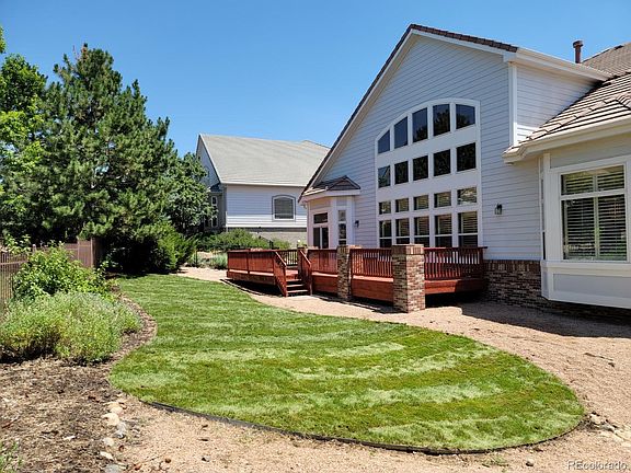 Two-story home in coveted Saddlerock North community, walking distance to the Saddlerock Country Club with pool, tennis, b-ball, 18-hole golf and driving range. Nestled on a mature lot, this home is luxurious, comfortable, and secluded. Upon entrance into the grand entryway, you will be greeted by the light-filled open floorplan. Gorgeous hardwood flooring throughout the main level, new carpet, new interior paint are just a few of the many updates. The open main floor with vaulted ceilings flows effortlessly from one room to the next, with large windows, bringing the lush outdoor space featuring a new irrigation system and freshly laid turf inside. The large eat-in Gourmet Kitchen features granite slab countertops, gorgeous cabinetry, High-End Stainless-Steel appliances, and a large center island. The Main Floor Primary Suite includes a Gas Log Fireplace, sitting area, spacious 5-piece bathroom, and large walk-in closet. The custom curved stairwell will take you up to the second level where you will find 3 oversized bedrooms, a large loft area, and two additional full bathrooms. The massive partially finished basement is complete with a large rec room, 2 additional bedrooms, full bath, and wet bar. The Saddle Rock community is well manicured and offers a multitude of amenities. Just minutes away from Arapahoe Rd, shopping, dining, C-470, and Southlands Mall. You do not want to miss this one.
