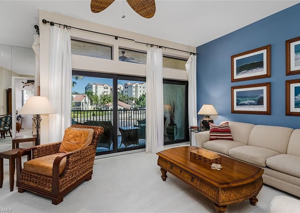 JUST LISTED for SEASON: this blissful 2nd floor, 2 bedroom, 2 bath condo in Pelican Bay!! The screened Lanai looks over the LAKE/FOUNTAIN and the BLUE POOL beyond! This condo is in the Valencia neighborhood, which is right on the main boulevard, and a quick walk to the TRAM STATION!! Pelican Bay offers the finest private BEACH CLUB in north Naples. RESTAURANTS are located on the sand at two separate BEACH Pavilions. There is CHAIR and UMBRELLA service at the beach, INCLUDED in your rental. Tennis courts, Pickleball, an AMAZING FITNESS center, Tennis PRO shop, SAILBOATS and KAYAKS to sign out for fun on the Gulf, and CANOES can be signed out for paddling through the BAY