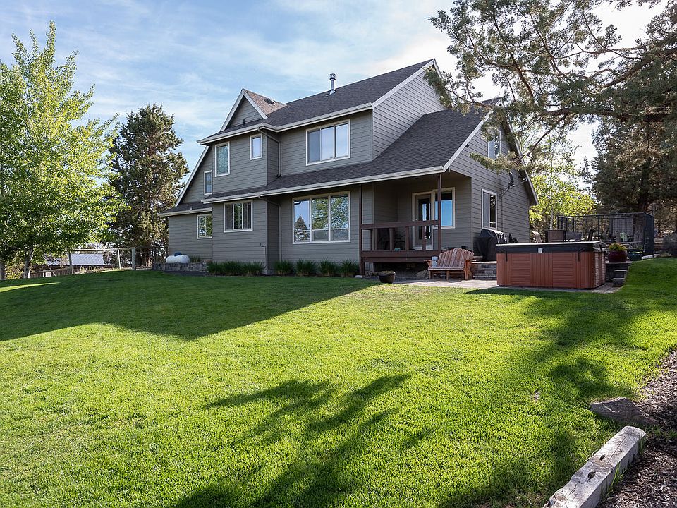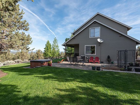 Sweeping Cascade Mountain views from this private 3.5 acre elevated setting. The well cared for home has an open floor plan with a sunken living room, functional kitchen and main level office/4th bedroom. The layout was designed to capture views from the main living area, primary suite and generous sized bonus room. Upstairs is the primary suite, two additional bedrooms and a large flex space or bonus room. An attached two car garage also offers plenty of extra storage space. Enjoy indoor outdoor living year round with a large grass area, patio and vistas from all areas of the property!