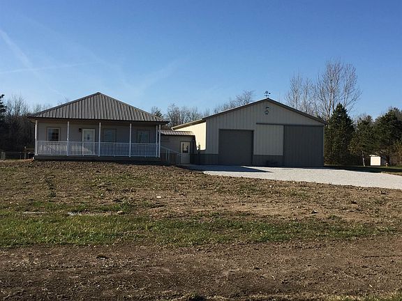 BRAND NEW, ONE OF A KIND, CUSTOM BUILT home with lots of features including a fantastic 36x48 Morton building featuring a 12x12 sliding door, a 10x10 overhead door, 14 ' high ceiling, a 10x12 enclosed, insulated and heated room, RV parking and hookup, plus 2 additional sliding doors. This home has lots of beautiful cabinets, hardwood floors, 1 1/2 baths, open concept living, insulated breezeway that attaches home to building, 12x12 horse/animal shed, a 100x100 non-climb Redbrand fenced-in area which would be great for a small animal farm (chickens, goats, etc) or a boarding facility for pets. This beauty sits on 5 acres with 3 wooded acres, plus dusk to dawn exterior lighting. Car enthusiast would love this amazing pole barn. This home has so much to offer! You don't want to miss this one!