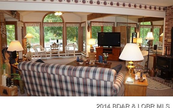 Located just off popular KK in Osage Beach,this home has it all. The home is charming, the waterfront excellent,and the neighborhood unique! Many desirable features of this property are open layout,outstanding views, bedrooms on main and upper levels,office space, high ceilings,abundant storage,surround sound wiring,Pella windows,eastern exposure, & deep water cove with main channel views. Enjoy the outdoors from two decks or the dock. (Dock & 4000# lift included.)The homes in this neighborhood circle around a private wooded Park. The lot is gentle so there are few steps to the house, dock, or 2-car insulated garage. See the list of items to be left for convenience of the Buyer. There is nothing comparable in Osage Beach.