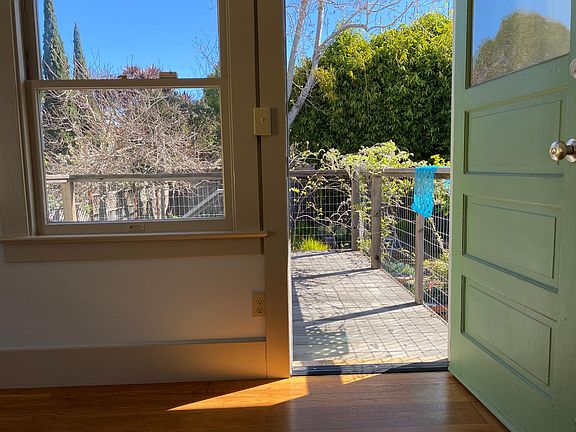 Light-filled craftsman home with great kitchen on very quiet street, close to Berkeley Bowl and an easy walk to Ashby BART. Three bedrooms, one and a half baths, cook's dream kitchen with updated appliances, full living room and dining room. Oak hardwood floors throughout in great condition. Redwood deck off one bedroom offers easy access to large landscaped back yard with picnic table, kiwi vines and Eureka lemon tree. Full laundry on premises, storage available in basement. Owner lives in lower unit. To move in, tenant pays one month's rent and $4,400 deposit, one year lease required. The house can be shown most times, by appointment.