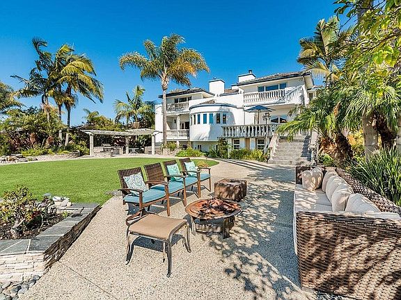 Exquisite estate situated on almost a half acre with panoramic ocean and golf course views! This immaculate Mediterranean style home with over 5,000 sq ft of living space is complete with a luxurious, newly upgraded master suite with a fireplace and private balcony, an eat-in kitchen, jack-n-jill bath, finished basement with a kitchen, living room, and separate entrance, 3 car garage, an ample driveway and an expansive backyard built for entertaining! call: 760-442-1302