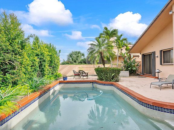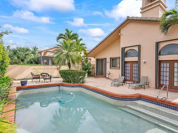 Incredible investment opportunity in Boca Pointe! Spacious 3-bed, 2.5-bath single-family home with the primary bedroom on the first floor. Bright open layout with tons of natural light from the Eastern exposure. Enjoy your private pool, lake views, and lush landscaping for added privacy. Priced perfectly for buyers ready to renovate and make it their own. Cash buyers only due to polybutylene pipes. Boca Pointe offers optional golf and club memberships. Don't miss this chance to create your dream home!