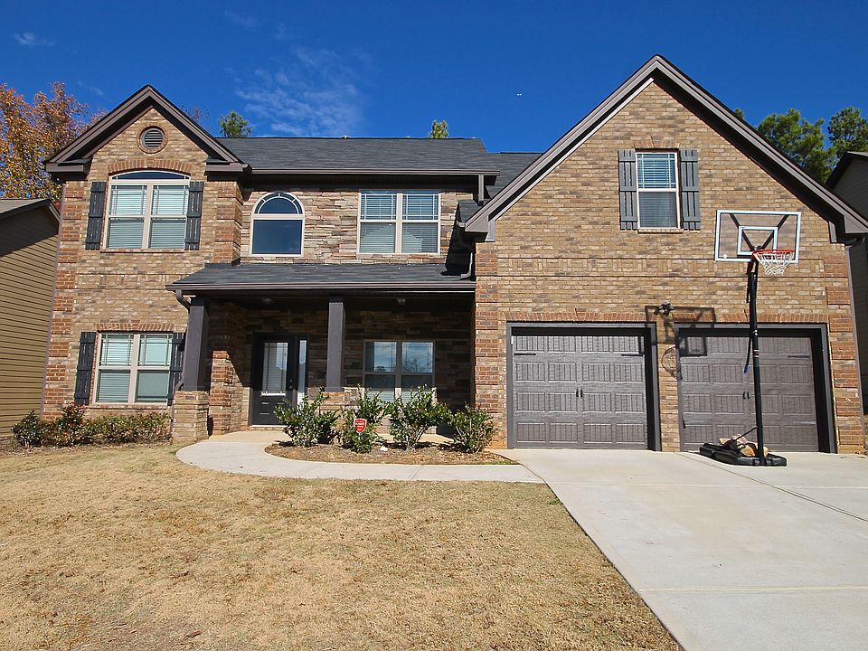 Lovely 2 story Traditional with Brick Front. RYAN FLOOR PLAN 1st floor has Formal Living room Sep. Dining room with coffered ceiling. Kitchen open to Family room with coffered ceiling. Kitchen has Island with Granite countertops, breakfast are with walk In pantry. Guest bedroom with full bath. Hardwoods Dining room, Foyer, & kitchen. Upstairs has Master suite with Oversized Sitting room with Fireplace, Large walk in closet. Master Bath has Separate tile shower & Garden tub, dual sinks with petrofina counter top. One bedroom has private bath with walk in closet. 2 additional bedrooms have jack & Jill bath between. Laundry room Upstairs. Metal spindle on stairs & Hall. Only 2 years young. Get Great Home with Excellent Price for 5 bedrooms 4 baths, Want Last Long. A Must See!