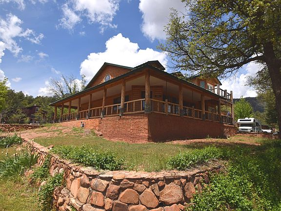 Get away from it all at this absolutely spectacular lodge home in Pine! The home features 3 bedrooms, 3 bathrooms, soaring ceilings, ample natural light, a loft, luxurious kitchen, and all the right touches. Outside, enjoy the gorgeous scenery and wonderful weather from the wraparound porch. The property also boasts detached guest quarters with an additional kitchen, bedroom, and bathroom, perfect for in-laws or as a rental. The home includes an unfinished, unpermitted basement with 1,600 sq ft that is not included in the home's square footage. The property will need a new septic system installed, as current system capacity is not sufficient for the home with basement and casita added. The home is being sold ''as is''. Buyer to verify all facts and figures.