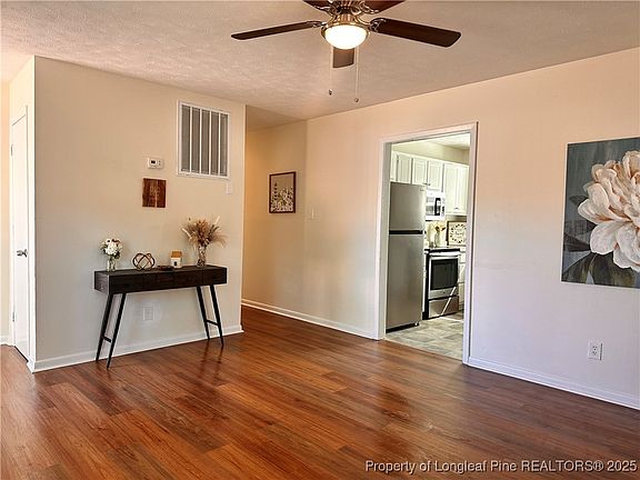 This home is a rare treat. An affordable 4 bedroom home in Jack Britt School district! Age is just a number where this property is concerned. It has been made new again from new paint (inside and out) new floors, appliances, counter tops and fixtures. Upon entering the front door into the living room you’ll see the large kitchen across from you. The laundry room/ storage is to the right with exit doors to both the carport and backyard. Going down the hall are 3 bedrooms on the left , the primary bedroom is straight ahead. There are 1.5 baths, but it feels like 2. You can enter from the hall bath and walk through to the primary bedroom.