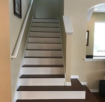 Stunning, energy-efficient, two story corner lot home with 4 bedrooms, 3.5 baths, hobby room, bonus room and fenced-in backyard oasis. The main floor features an open kitchen area overlooking the breakfast nook and spacious family room. First floor hobby room offers great work space/play area and the guest suite is ideal for visitors. First floor, stairs, upstairs hallway, and master bedroom flooring were updated to engineered laminate. Other updates include granite countertops, 42" cabinets, stainless steel appliances, and upscale light fixtures. Enjoy outdoor living on the covered lanai with custom pool and upscale landscaping. Pool includes sun shelf with bubbler, waterfall, raised seating area, multicolor LED pool light, and limestone deck. The area boasts multiple lakes, excellent schools, minutes to attractions, and easy access to dining and shopping.