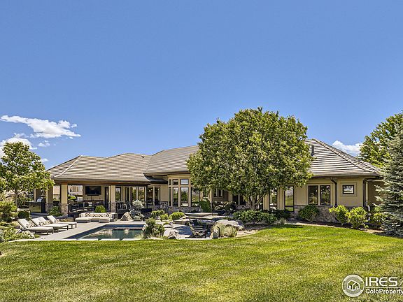 Amazing Niwot home with unparalleled elegant finishes and premium, unobstructed mountain views. Beautifully landscaped, newly constructed outdoor living space perfect for entertaining includes pool, hot tub, 2 custom water features, fire pit, natural stone patio, and covered deck area featuring an outdoor kitchen. Outdoor space also includes custom designed putting/chipping green, in ground trampoline, swing set, and landscaped garden beds. Ranch style four bedroom home with large windows, lots of light and modern upgrades. Master bedroom has a luxury bathroom and an oversized walk in closet with separate laundry facilities. All bedrooms have walk in closets and en suite bathrooms. Additional room above the garage is a perfect second office or playroom. Large, spacious basement with a fully equipped 850 sq ft gym, custom built in kids play structure (with climbing wall), elegant bar, and entertaining space. Basement area also features 1500 sq ft of unfinished space that can be used as storage or future improvements. Large lot backs to neighborhood open space providing spacious feel and privacy. Neighborhood offers maintained trail system that connects to Boulder trails. Premium location close to Boulder, Longmont and Lafayette and within a short drive to multiple top rated public and private schools.