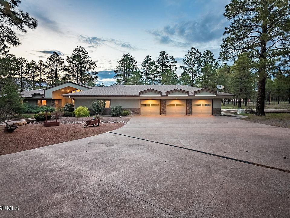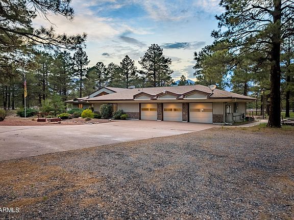 This remarkable 1994 custom built home sits on 4.88 heavily treed acres, This property offers Natural Gas and private water (Doney Park