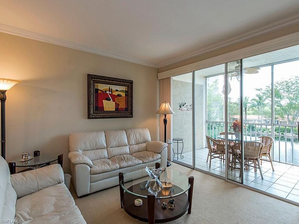 C.12117 - St. Vincents, rarely available top floor residence with wonderful lake view. Elegant, spacious great room with formal dining is perfect for entertaining. Opens to generously sized screened lanai for magnificent Sunsets. Gourmet eat in kitchen features granite counters, breakfast bar and stainless built in appliances, crown moldings and plantation shutters, residence is now offered turn-key-furnished. The open floor plan allows you to enjoy the gulf breezes from the lanai through to the generously sized front sitting porch. St. Vincents has the lowest density in Pelican Bay with only 24 residences also has one of the lowest condo fees. Best of all this Beach side residence has private gate access to tram, no car to deal with for a day at the Beach!!! St. Vincents is located within Crown Colony has 24 hour manned security gate and provides the utmost in security. New listing a must see! New Roof on this building Fall 2015.
