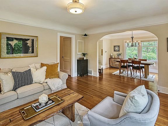 Elevated above the street on a corner lot this exceptional light-filled Craftsman sits just 1 block away from Green Lake. Step into this restored home w/original period details intact paved w/oak & fir floors, coved ceilings, extensive millwork & leaded glass windows. Spacious living rm w/tiled frplc & windows w/up-down blinds. Chef's kit w/beadboard cabs, crown moldings, marble cntrs & SS Appls w/new 5 burner gas stove. Step out the kitchen to the large deck. Light & bright primary bdrm, full bath w/basketweave flr & dining rm finish this floor. Head upstairs to 2 more bdrms w/period Wainscoting & ¾ bath. Lower level w/4th bdrm, office, family rm, laundry rm w/sink & full bath. 1 car gar & close to restaurants, shopping & coveted schools