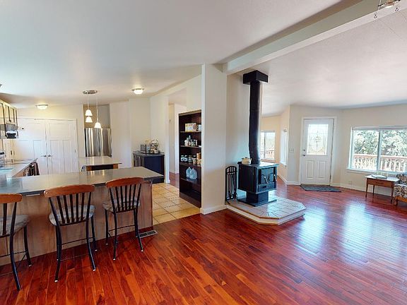 Fully updated and ready to be called HOME! This amazing home with tile and wood floors, solid surface counter tops, updated cabinetry, is truly not something you would expect from a home this age. Vaulted great room yet still offers some kitchen separation, master on one end of home additional bedrooms on the other. Detached garage with front deck all on 2.38 acres that are cross fenced to keep pets and or children safe. Ductless heating and cooling, newer roof (within last 4 years) new siding, canal frontage, full RV hookup in pad, all appliances stay. 73rd is a paved road and gives easy access to both Bend and Redmond.