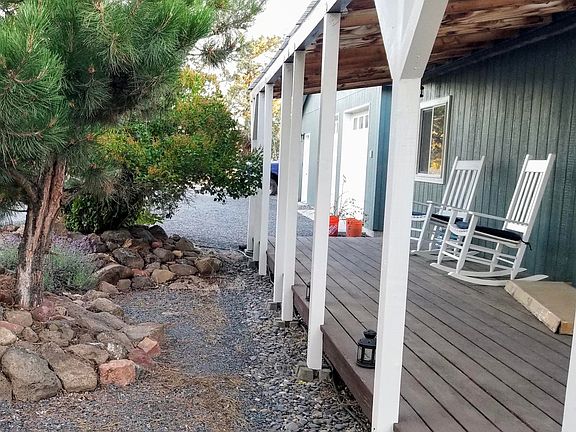 Convenient location between Bend and Redmond. Views of Smith Rock, city, valley, and the Ochocos. The backyard has been set up to enjoy the view from the above ground pool, sunning deck, hot tub, and Adirondack chairs. It also features a low maintenance drip system for all the wild flowers. The 28'x32' detached double car garage has a fully insulated, heated and cooled studio with a 3/4 bathroom. The concrete RV pad is 16'x46' and just a short distance from the RV dump and electrical hookup. There is plentiful storage with two additional storage shed spaces, one 10'x20' and the other 12'x7'. The interior features customized touches including handmade wood flooring, walk-in tile shower, wainscoting, and a concrete topped center island.